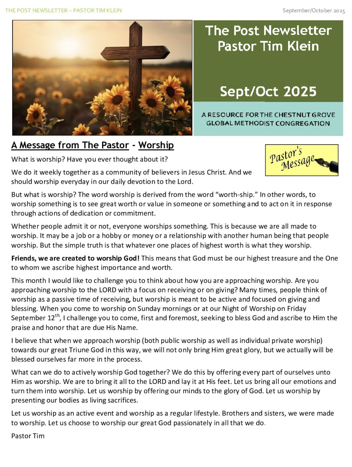 Chestnut Grove Church is a Global Methodist congregation committed to one simple conviction: that the love of Jesus is meant to be shared, lived out through service, outreach, and care for one another.